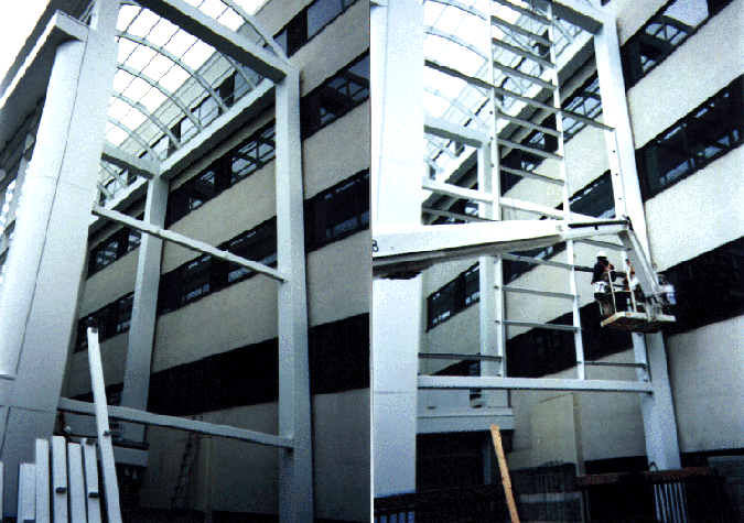 These are progressive construction pictures of the right side, North Elevation as it is going up. If you look up you can see the Skylite extension. Each lite of glass is 24" x 60" in size.