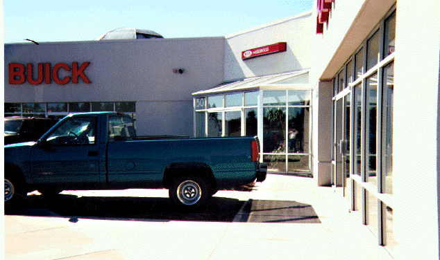 style. There is a auto showroom door with a 3' active leaf & a 5' inactive leaf. The slope glazing
